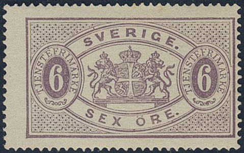 Sweden. Official Facit Tj4g ★★, 6 öre deep lilac, perf 14, yellowish paper. Opinion by …