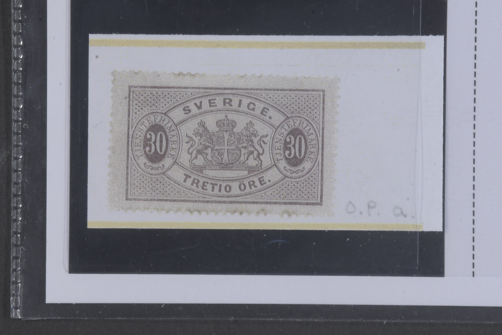 Sweden. Official Facit Tj8a ★, 30 öre deep brown, perf 14, blue-greyish paper. Opinion (shade) by O.P. SEK 3400