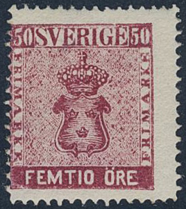 Sweden. Facit 12b (★), 50 öre violet-carmine. Rich colour. Regummed.