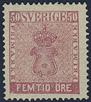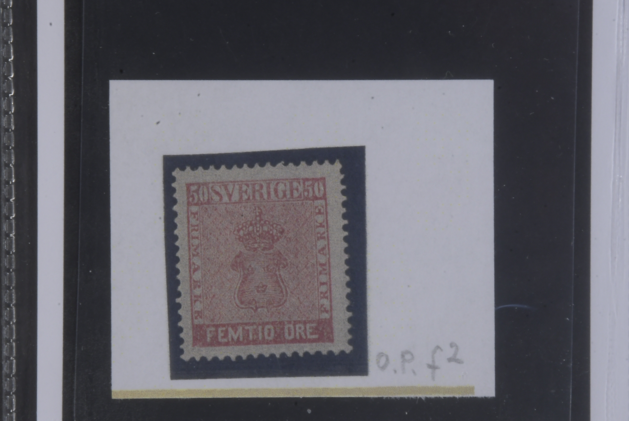 Sweden. Facit 12f2 ★, 50 öre violet-tinged rose, perforation of 1865. Fresh and beautiful example. Opinion (shade) by O.P. SEK 6000