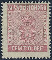 Sweden. Facit 12h ★★, 50 öre rose. Beautiful and fresh MNH example. Certificate Mats …