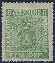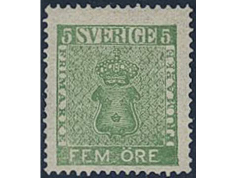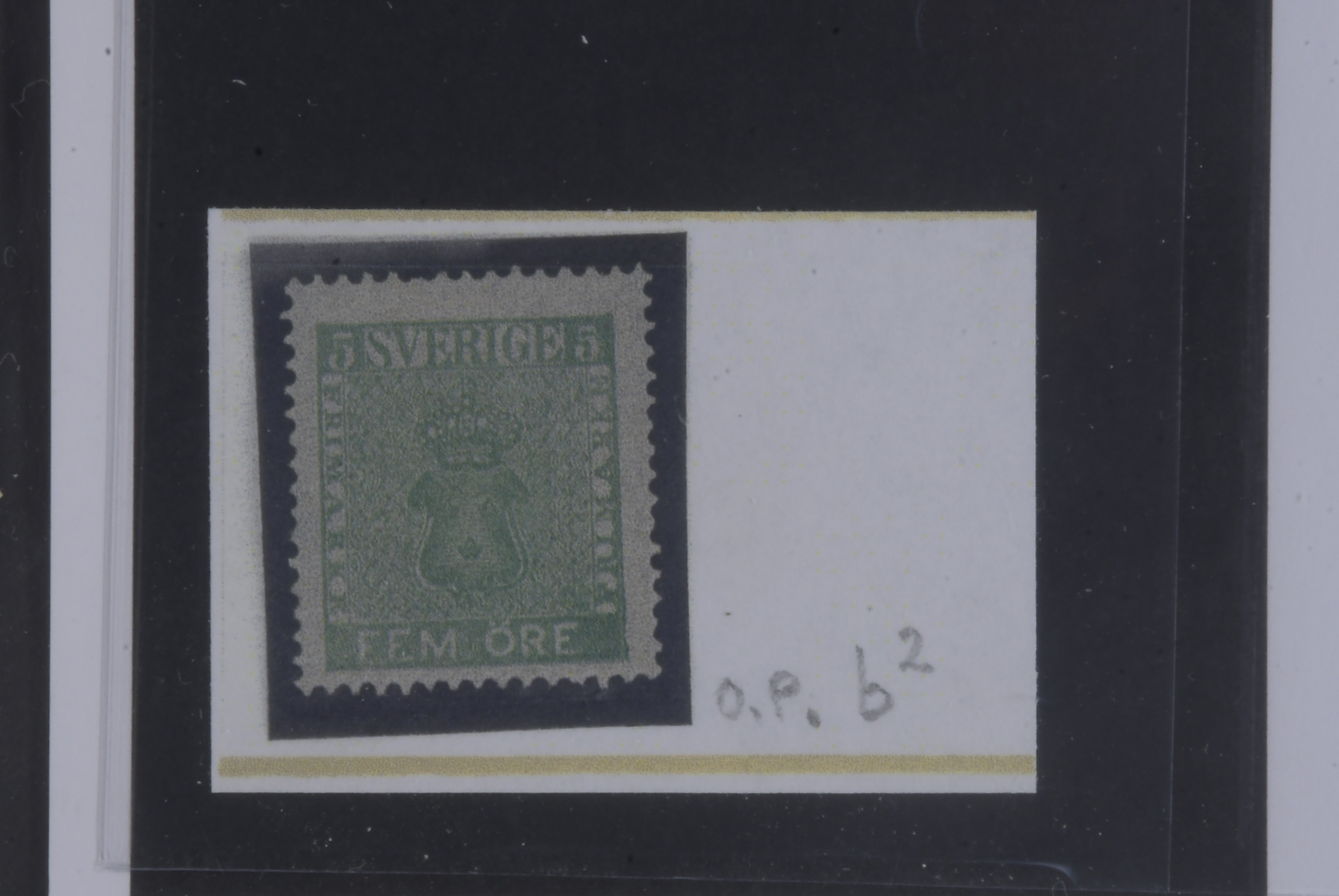 Sweden. Facit 7b2 ★, 5 öre green, perforation of 1865. Opinion (shade) by O.P. SEK 1700