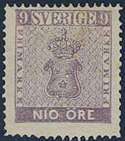 Sweden. Facit 8c (★), 9 öre blue-lilac. Opinion (shade) by O.P.