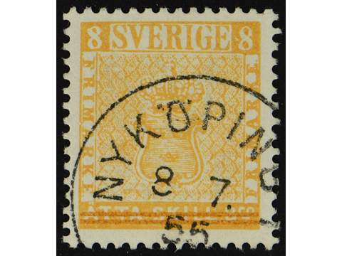 Sweden. Facit 474 used , 1955 Stockholmia-55 8 öre yellow. NYKÖPING 8.7.55.