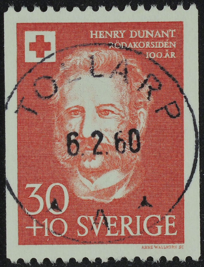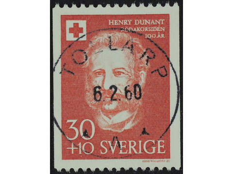 Sweden. Facit 502A used , 1959 Centenary of the Red Cross 30+10 öre red. EXCELLENT cancellation TOLLARP 6.2.60.