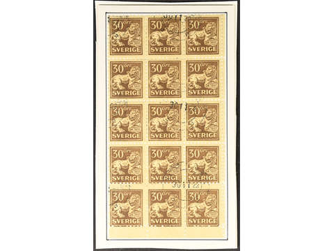 Sweden. Facit 148C used , 30 öre brown, perf on four sides, in block of 15 cancelled KORSNÄS 30.11.1922. Very scarce unit.