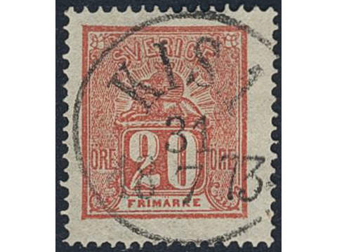 Sweden. Facit 16e used , 20 öre red. EXCELLENT cancellation KISA 31.1.1873.