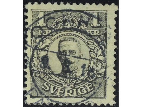 Sweden. Facit 77 used , 1 Krona black, watermark crown. EXCELLENT cancellation STOCKHOLM 9.8.18.