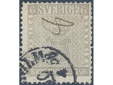 Sweden. Facit 3f used , 6 skill grey-brown on medium thick paper. Fine copy with certifacte Sjöman (1969). SEK 13000