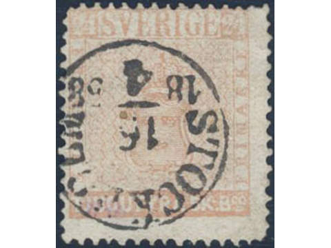 Sweden. Facit 5f used , 24 skill dull light red on medium thick paper. Beautiful copy cancelled 16.4.1858. Allegedly delivery (print) 9a. Two somewhat short corner perfs. Very scarce shade. Guarantee cancel KPK. SEK 40000