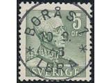 Sweden. Facit 271C used, 1946 Gustaf V large numerals 5 öre green, perf on four sides. Perfect canc. BORÅS 1 10.9.46.