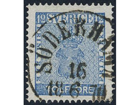 Sweden. Facit 9c3 used, 12 öre blue, perforation of 1865. EXCELLENT cancellation SÖDERHAMN 16.6.1870. Position 12 in plate 7.