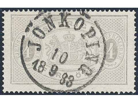 Sweden. Official Facit Tj2c used , 4 öre light grey, perf 14, yellowish paper. Position 44. EXCELLENT cancellation JÖNKÖPING 10.9.1883. SEK 700+