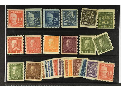 Sweden. ★ 1920–36. All different for example F 149A, 151A+C, 154-55, 159, 177C, 180a, 184, 187a, 189, 190a+b, 191a. Mostly good quality. F SEK 5.020 (28)
