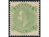 Sweden, C A Nymans proposal stamp FEMTO öre in yellow green colour with dashed background. With variety partly filled 'O'.