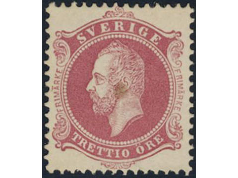 Sweden, C A Nymans proposal stamp TRETTIO öre in carmine red colour with smooth background. Spot.