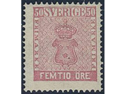 Sweden. Facit 12h ★★, 50 öre rose. Beautiful and fresh MNH example. Certificate Mats Nilsson 3,3,5 (2025). SEK 14000