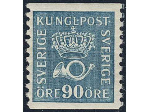Sweden. Facit 167bA3 ★★, 90 öre greenish blue vertical perf 9¾ on white paper (A3). Good centering. SEK 3500