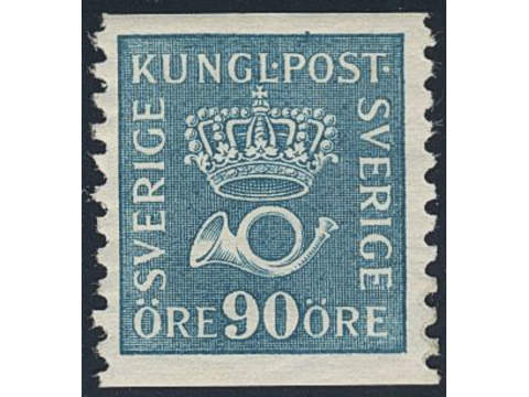 Sweden. Facit 167bA3 ★, 90 öre greenish blue vertical perf 9¾ on white paper (A3). Almost never hinged. SEK 950