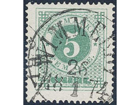 Sweden. Facit 19d used , 5 öre blue-green. Beautiful example cancelled WIMMERBY 26.1.1874.