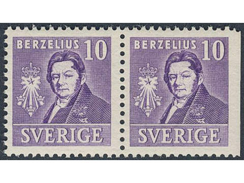 Sweden. Facit 320CB ★★, 1939 Royal Academy of Sciences 10 öre violet, pair 4+3. Very wide margin. SEK 1700