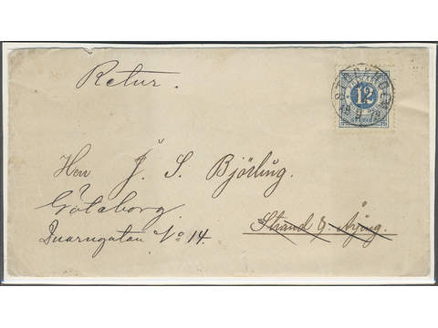 Sweden. Facit 32b cover , 12 öre deep blue on inland cover of first rate, forwarded domestically with excellent cancellation STOCKHOLM KE 14.9.1878.