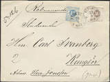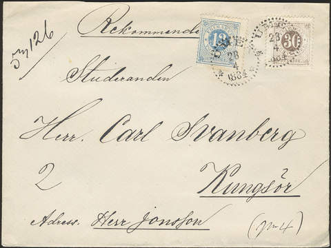 Sweden. Facit 32e, 35i cover , 12 öre dull greyish blue and 30 öre brown (smooth print) on registered inland cover of second rate cancelled UMEÅ 28.4.1884.