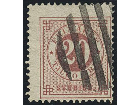 Sweden. Facit 33. Cancellations, FINLAND. Finnish figure cancellation on 20 öre Circle type perf. 13. One somewhat short perf.