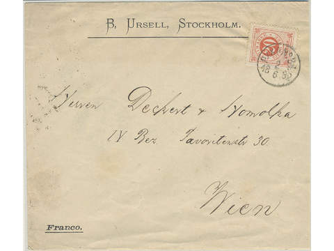 Sweden. Facit 33d cover , 20 öre dull orange-red on cover to Austria cancelled PKXP No …