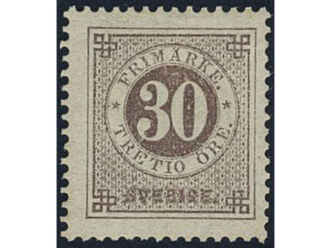 Sweden. Facit 35h ★, 30 öre black-brown on soft paper. Slightly short perfs. SEK 5000