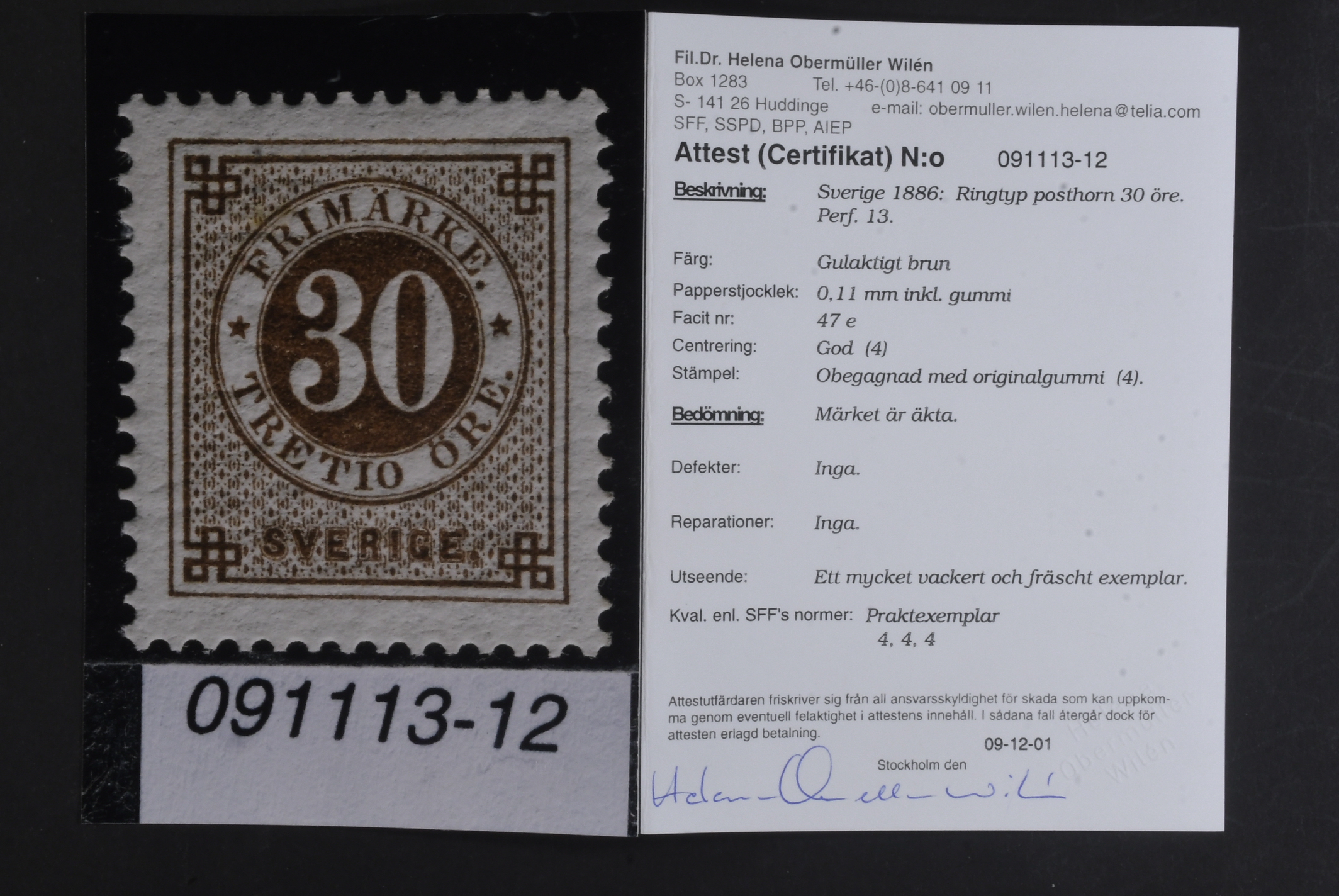 Sweden. Facit 47e ★, 30 öre yellowish brown. Superb. Certificate HOW 4, 4, 4 (2009).