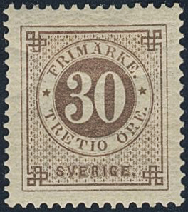 Sweden. Facit 47e ★, 30 öre yellowish brown. Superb.