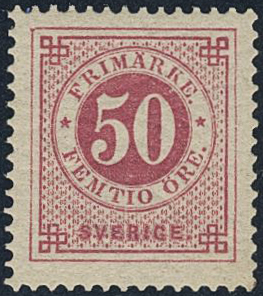 Sweden. Facit 48a ★, 50 öre carmine-rose. Very fine and fresh. SEK 2500