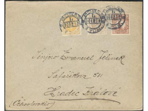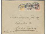 Sweden. Facit 84, 72, 73 cover , 15 öre brown together with 2 and 3 öre Coat-of-Arms on first rate cover to Czechoslovakia. Cancelled BORÅS 30.12.19. Unusual destination.
