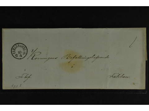 Sweden. K county. CARLSKRONA 10.4.1856, circle cancellation. Type 1 on cover sent during the skill bco stamp period to Falun.