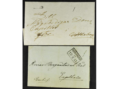 Sweden. M county. LUND, straight postmark. Cover sent to Gothenburg. Also one cover sent from ULRICEHAMN 29.3.1841 to Engelholm. (2). Postal: 1000:-