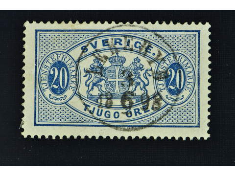 Sweden. Official Facit Tj19a used , 20 öre dull blue, perf 13. Beautiful example cancelled LEKERYD 3.6.1893.