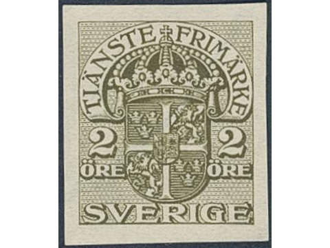 Sweden. Official Facit Tj41 P (★), 2 öre imperforated colour proof with watermark lines. Scarce.