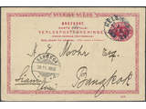 Sweden. Postal stationery, Single postcard, Facit bKe14/405, Postcard 10 öre sent from HELSINGBORG LBR 1.11.1906 to Siam, with arrival pmk BANGKOK 29.11.1906.