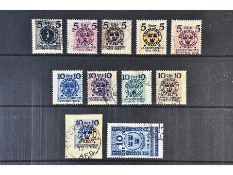 Sweden. Facit 115–25 used, 1916 Landstorm II SET (11). A few short perfs. 10+NITTIO öre/1 kr on cut piece. SEK 7900