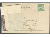 Sweden. Facit 143A cover , 5 öre green, type II on underpaid postcard to Finland, franked as printed matter, cancelled STOCKHOLM 3 21.6.30. Finnish postage due label and 1 mark postage due paid with 20x5p stamps attached to the postcard. Attractive item!