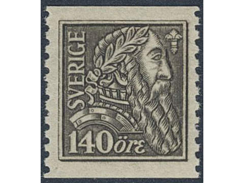 Sweden. Facit 155b ★★, 1921 Gustaf Vasa 140 öre black. B-ppr. Superb quality. SEK 800