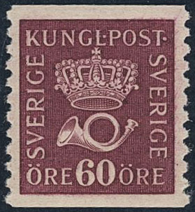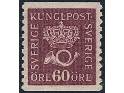 Sweden. Facit 163 ★★, 60 öre violet-carmine vertical perf 9¾ type II. Superb. SEK 2700