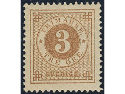 Sweden. Facit 28h ★, 3 öre yellowish orange-brown, calendered or soft paper. SEK 1100