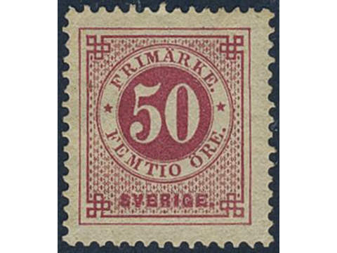 Sweden. Facit 36c ★, 50 öre violetish carmine. One weakly bent corner perf. Opinion (shade) by O.P. SEK 4000