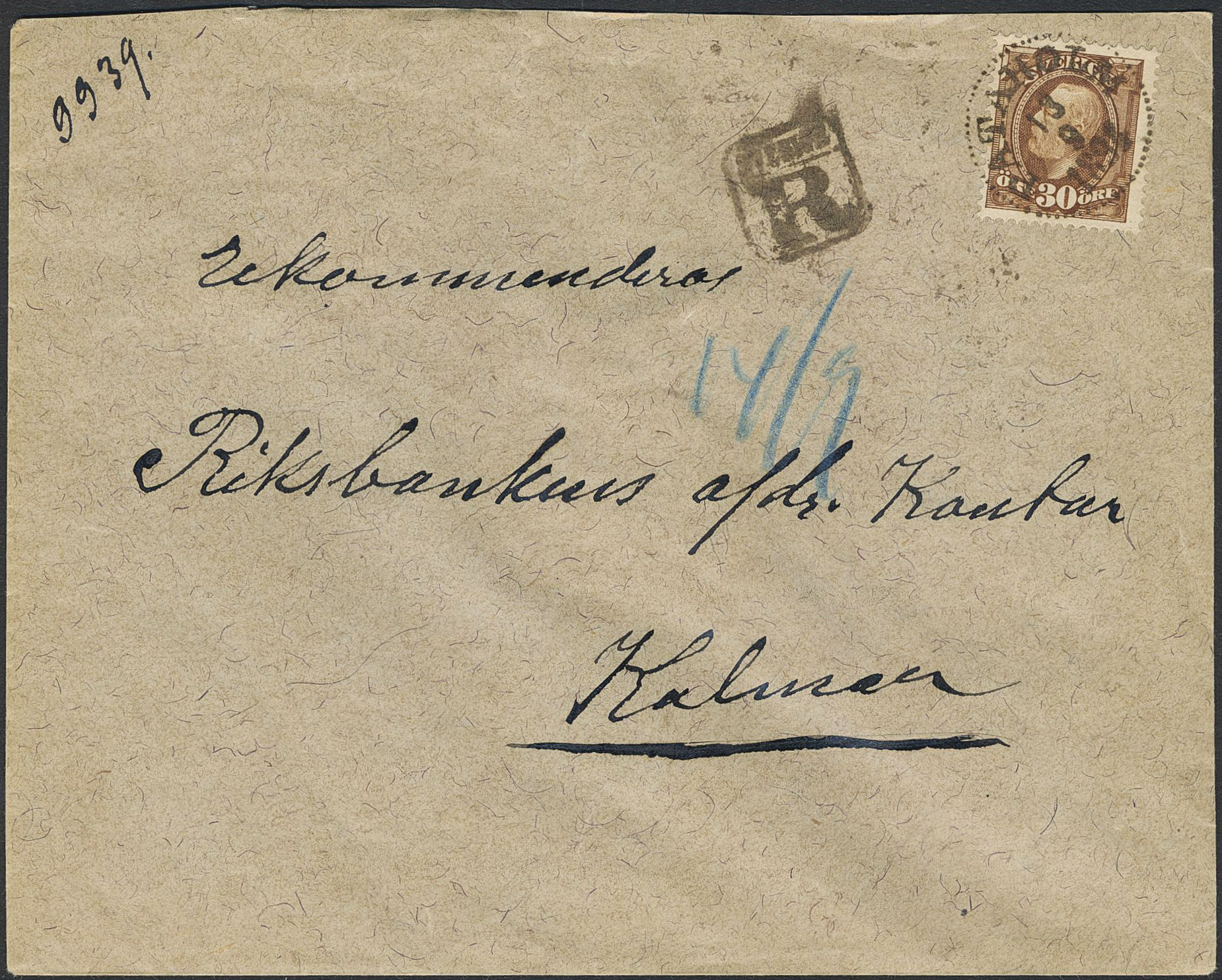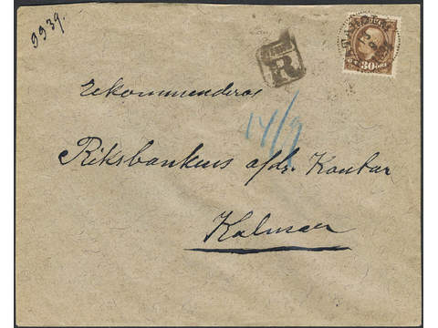 Sweden. Facit 58a1 on cover, Oscar II 30 öre yellowish brown as single franking on registered letter cancelled PATAHOLM 13.9.1894. Boxed 'R' cancellation. Attractive letter.