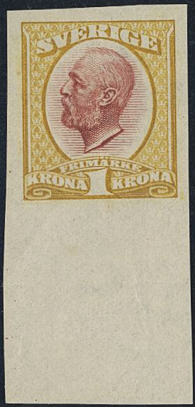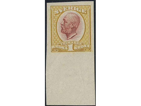 Sweden. Facit 60P (★), Proof type P, olive yellow/dull red with sheet margin. Superb.