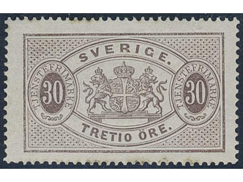 Sweden. Official Facit Tj8a ★, 30 öre deep brown, perf 14, blue-greyish paper. Opinion …