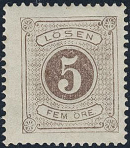 Sweden. Postage due Facit L3a ★★, 5 öre brown-light brown, perf 14. Fine.