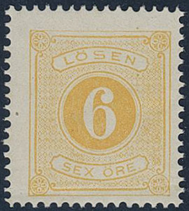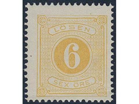 Sweden. Postage due Facit L4b ★★, 6 öre yellow, perf 14. Fold. Opinion (shade) by O.P. SEK 3500